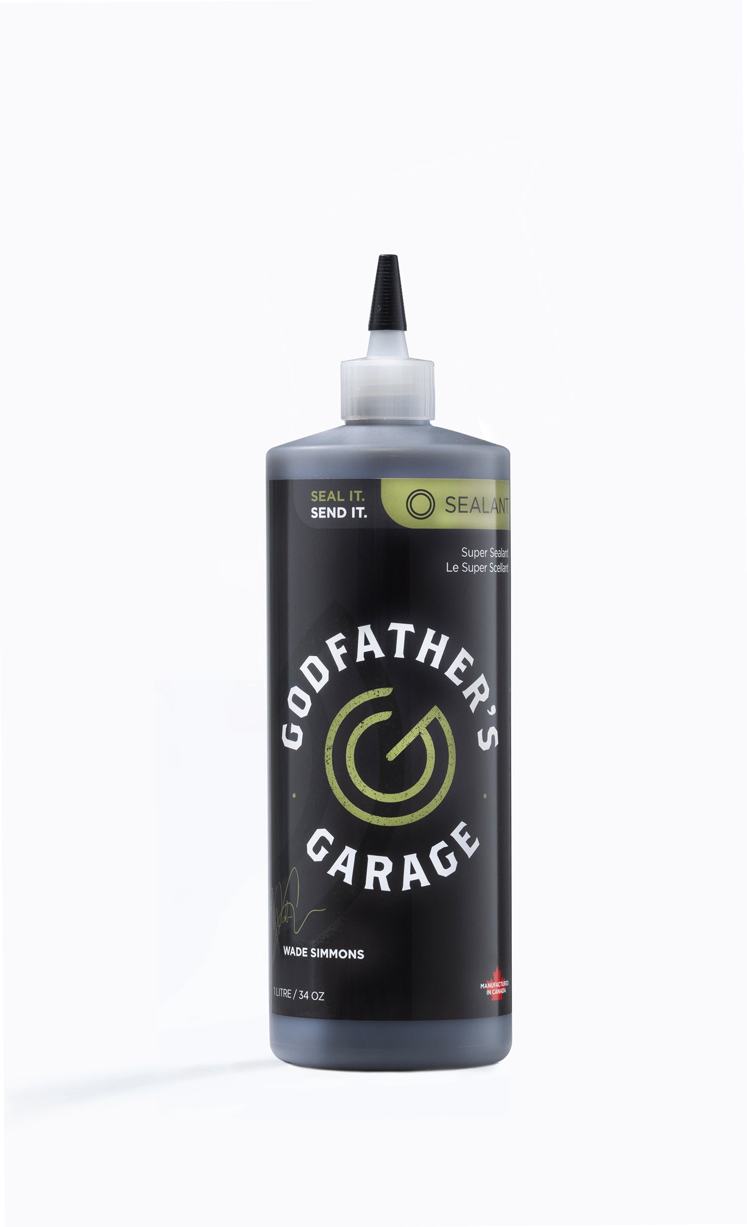 Godfather's Garage Tire Sealant is technologically advanced to seal tubeless punctures fast! Our exclusive formula, targeted for use in mountain bike and moto tires, contains no latex or ammonia, is non-toxic + biodegradable, and is 100% water soluble. This sealant will not dry out, will not need constant replenishing over time, and it will not clog valves! Take your MTB and Moto tubeless setups to the next level with our Made in Canada Godfather's Garage Sealant. SEAL IT. SEND IT!